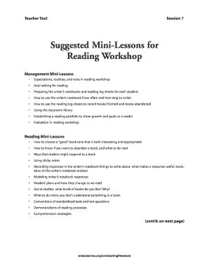 Read Suggested Mini-Lessons for Reading Workshop Doc Internet Archive